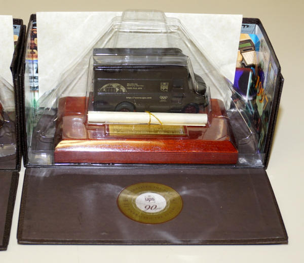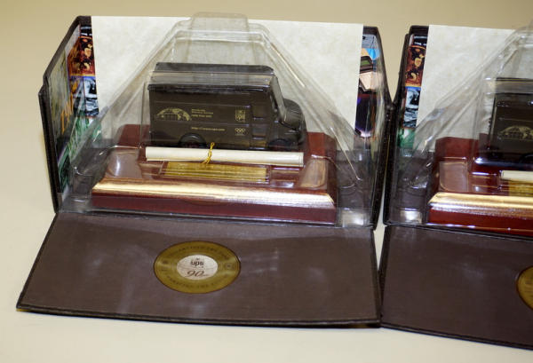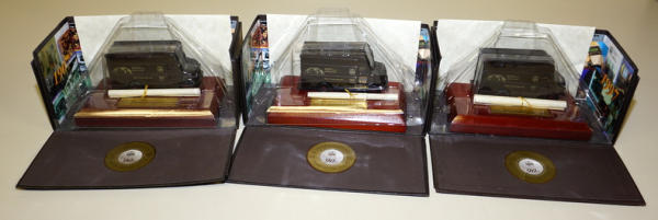 about 1/50th Scale toys, fancy boxes on a wood plaque, all NIB, 3x the money