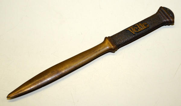 8.25" long, great original patina, lettering is crisp and blade is nice, if you are looking for a nice original one of these, this is a good one