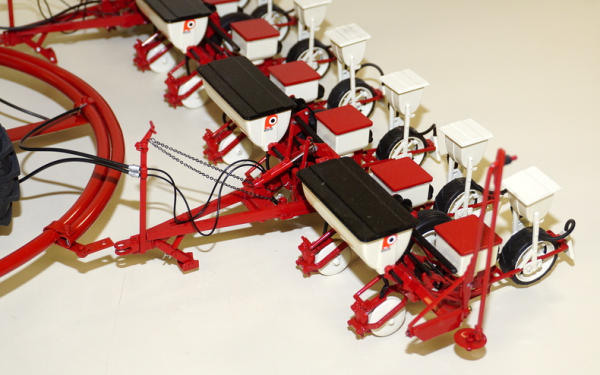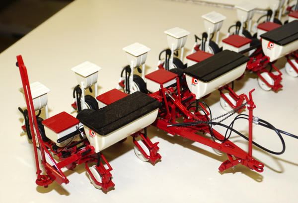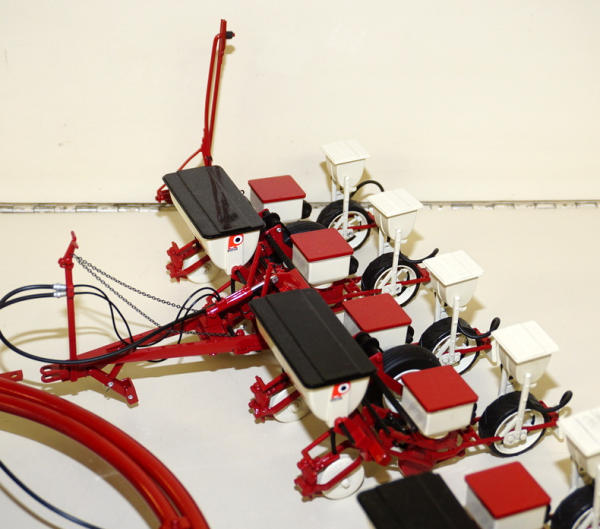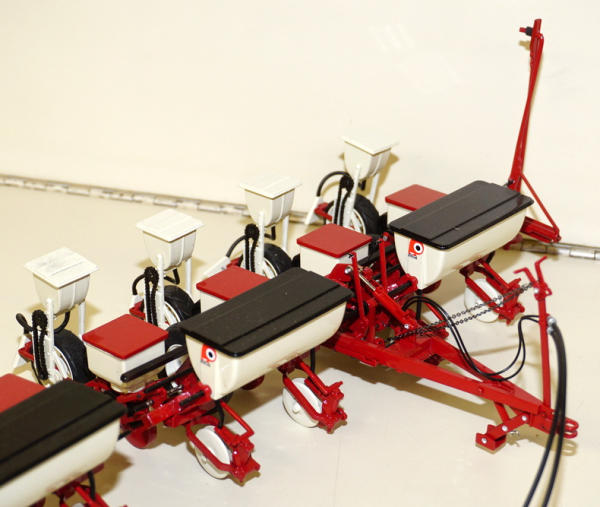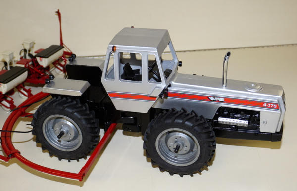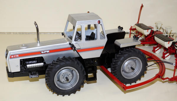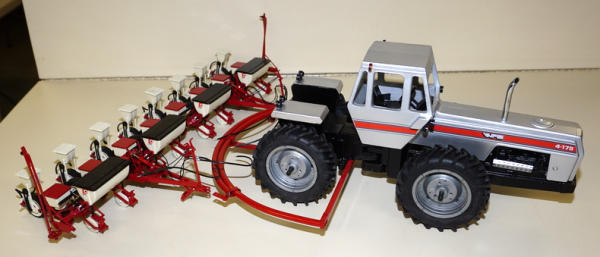 Very cool set up; tractor is an old plastic White 4-wheel drive restored & customized with Firestone Singles, lights & Chrome stack; hitch is 100% scratch built by the late Terry Johnson, planters are high-Detailed SpecCast with the markers customized to use an 8-row, fantastic set up