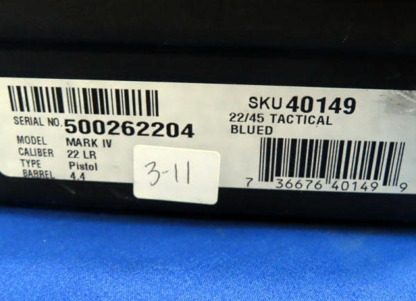 6" BBL w/threaded muzzle; checkered rubber grips; picatinny rail; factory hard case; 2-magazines; looks mint & unfired; USA; SN#500262204; A-155