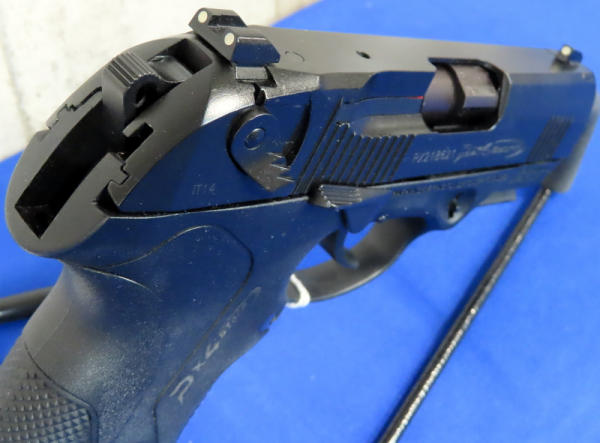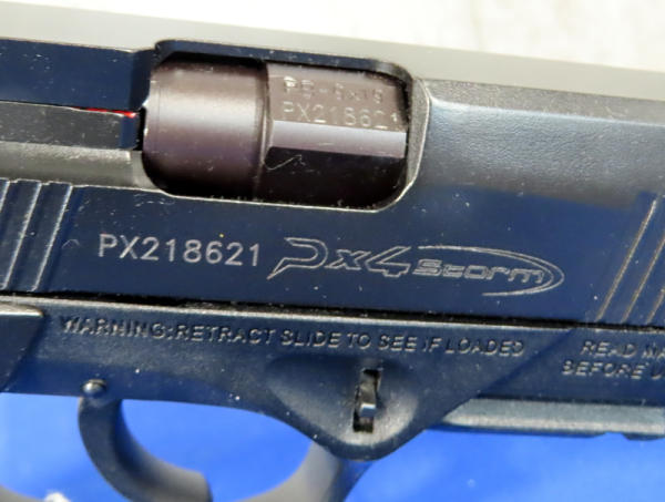 3.25" BBL; black synthetic frame w/steel slide; night sights; 2-magazines; includes a Spring Recoil Reduction System; factory hard case; appears mint & unfired; Italy; SN#PX218621; A-128