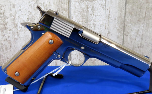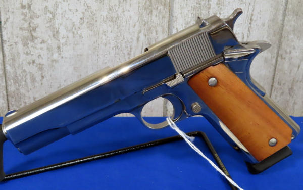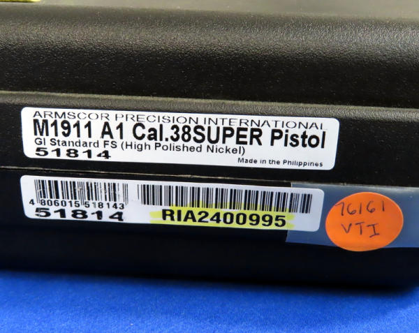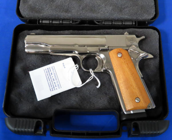 5" stainless barrel; nickel finish; smooth wood grips; one magazines; factory hard case; Philippines; SN#RIA2400995; A-129