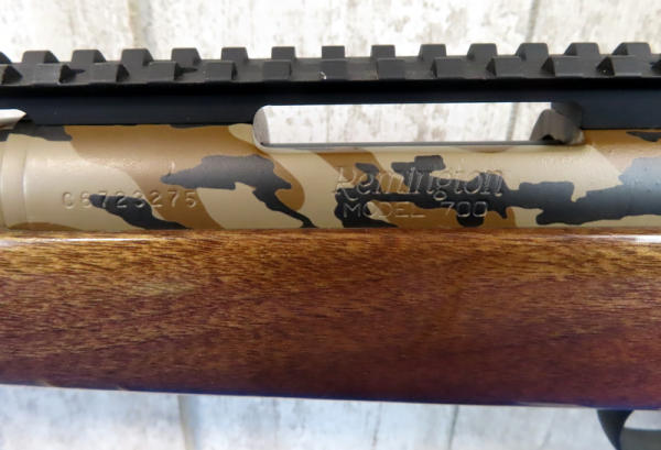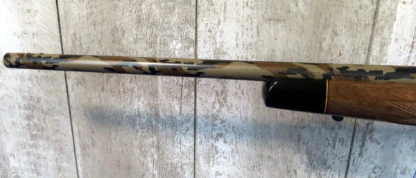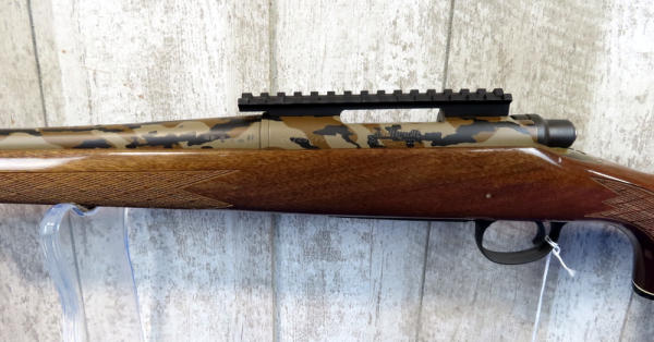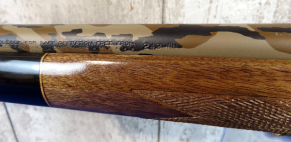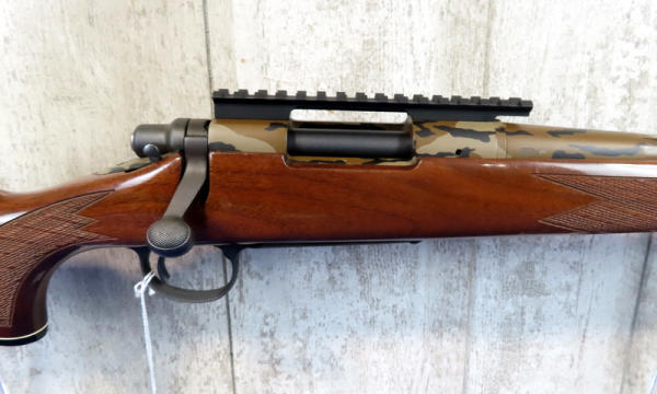 22" custom camo barrel has a few scratches; smooth action; very nice high gloss wood; picatinny rail; USA; SN3C6723275; A-149