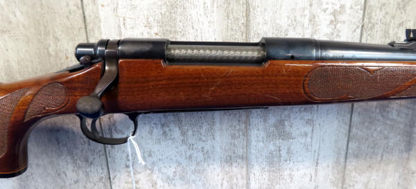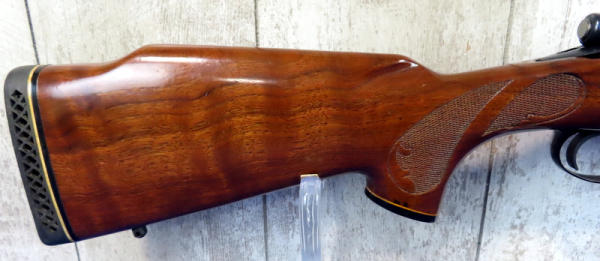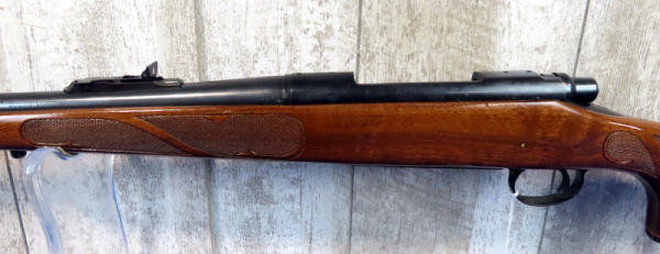 24" BBL. w/globe front sight; smooth action; mfg. 1969; stainless blued barrel; high gloss wood finish; drilled & tapped; USA; SN#6271199; A-146