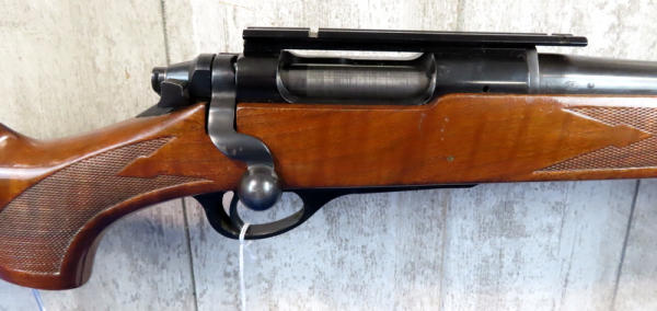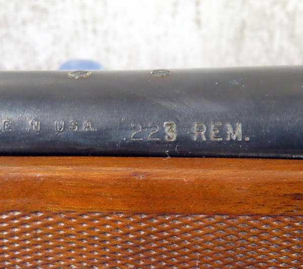 was originally a .222 Rem and was resleeved for .223 Rem caliber; 18.5" BBL.; smooth action; picatinny rail; nice wood w/a few field marks; minor bluing loss around muzzle; caliber has been re-stamped on barrel; USA; SN#A6574823; A-150