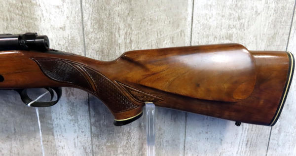 22" BBL.; extremely nice condition, only damage I see is a very small knick in the pistol grip cap; scope rail; smooth action; beautiful checkering; USA: SN#815707; A-139