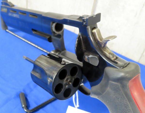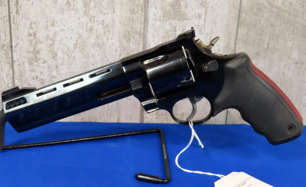 6.5" BBL w/Vent-Rib & Ported Muzzle; adjustable rear sight; rubber finger groove grips; 5-shot swing out cylinder; very light drag line; if shot, it's been very little, great condition w/nice bright bluing; Brazil; SN#RA614467; A-115