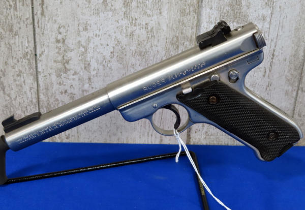 5.5" Stainless Barrel; plastic checkered grips; one magazine; used; has some minor wear; adjustable rear sight; USA; SN#219-08035