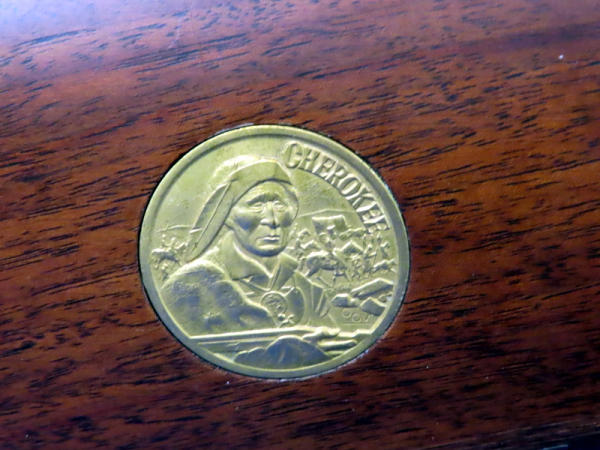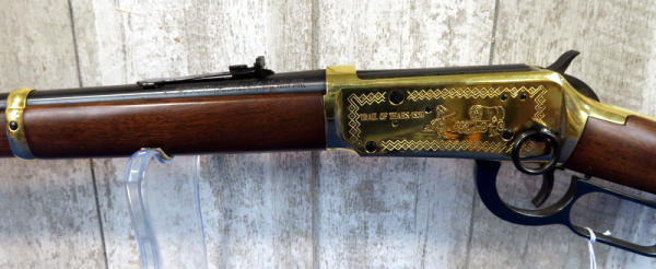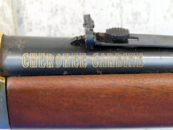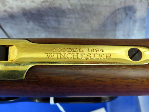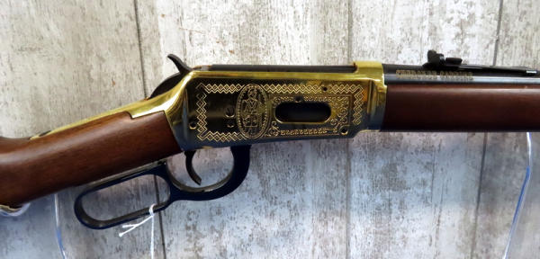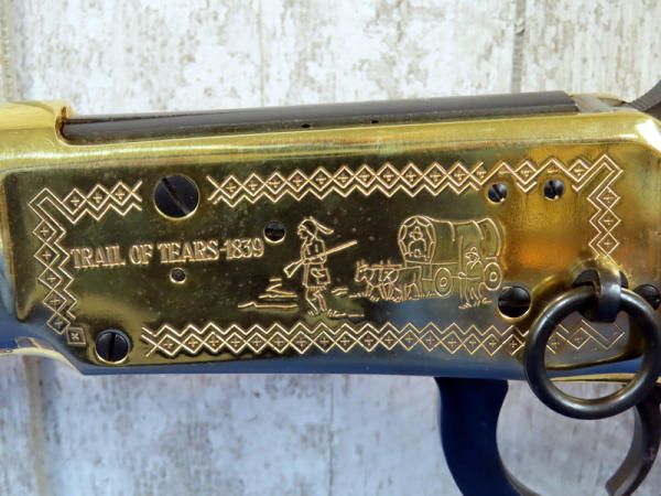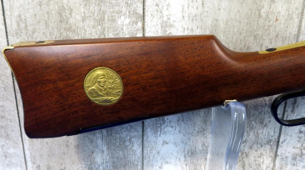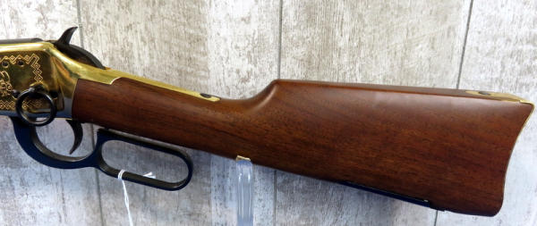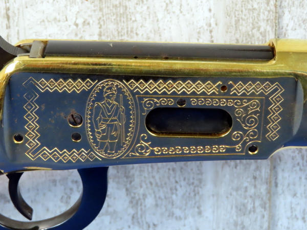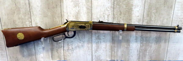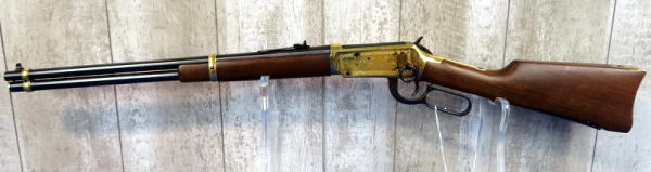 20" BBL.; highly engraved gold receiver w/gold bands & accents; coin inlaid in stock; unfired; has a few marks from storage and some minor surface rusting by rear sight; NO BOX; has ammo storage in stock, neat feature; Canada; SN#CK03358; A-145