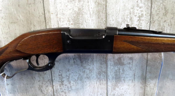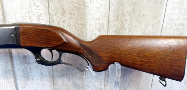 alittle different that the earlier .300 sav, stock is different; 24" BBL.; smooth action; very nice wood; sling rings; case hardened lever; nice Model 99; USA; SN#555965; A-156