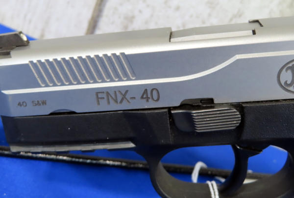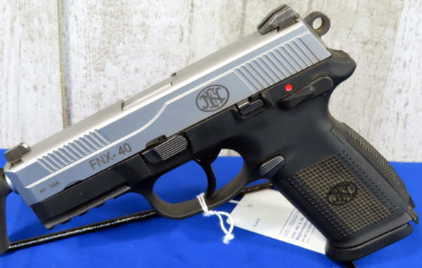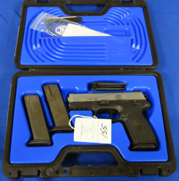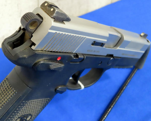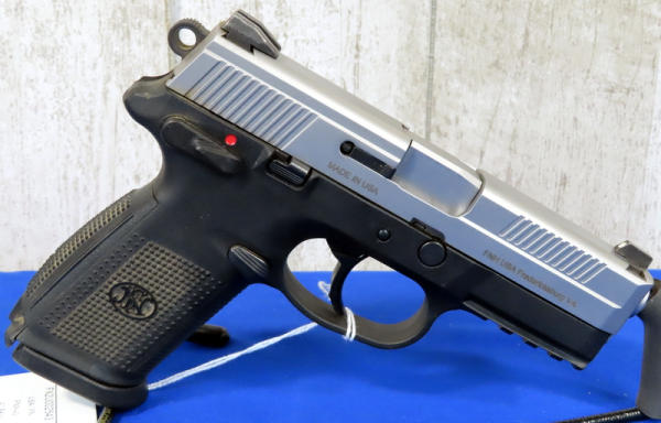 4" Stainless barrel; black synthetic frame w/stainless slide; night sights; 3-magazines; factory hard case; used but good shape; USA; SN#FX2U002543; A-140