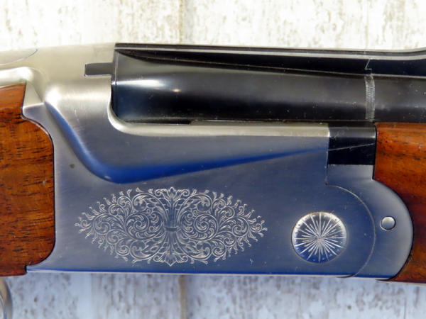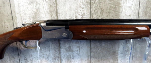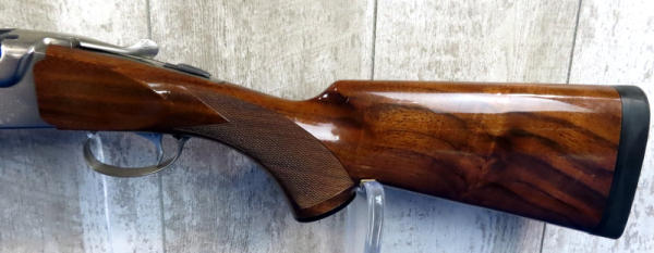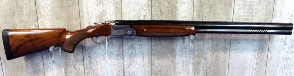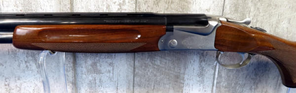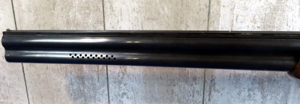28" VR-BBLs w/bottom barrel ported by muzzle; easy break action; engraved stainless receiver; very nice wood w/high gloss finish, just a couple of use dings; single trigger; screw in chokes; 3"; Japan; SN#AS01373; A-142