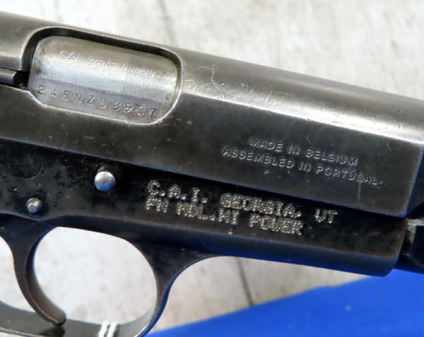 4-5/8" BBL; black plastic checkered grips; has quite a bit of finish wear; import marked; Made in Belgium & assembled in Portugal; one magazine; SN#245NZ53907; A-140