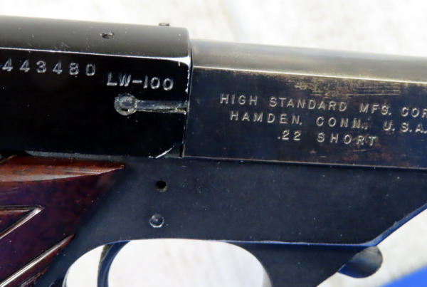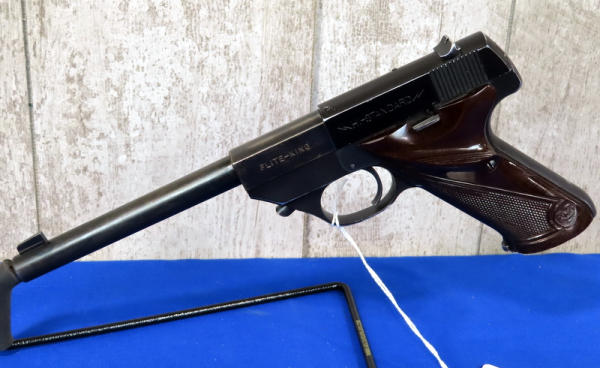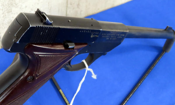 6.75" BBL; believe to be Tenite checkered grips w/left side thumb rest; has some finish loss to the barrel; one magazine; USA; SN#443480; A-166