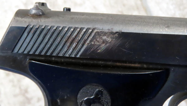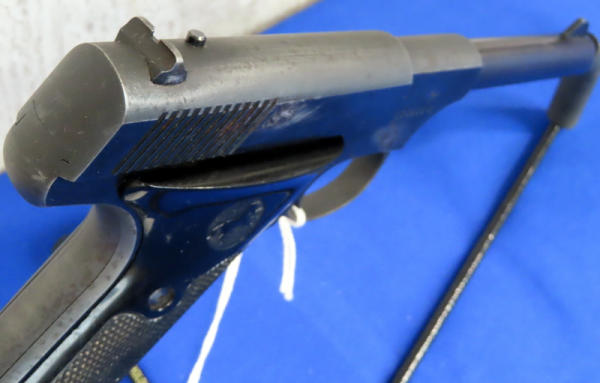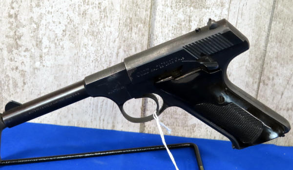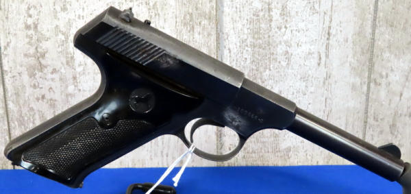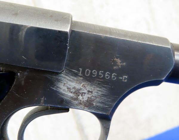 4-5/8" BBL; black checkered plastic grips; has some finish loss and spotting by the chamber on both sides; small spots of surface rusting on front handle strap as well; used; USA; SN#109566-C; A-132