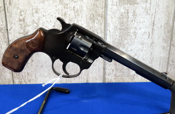4.75" Oct. BBL; checkered Tenite grips; 6-shot swing out cylinder; overall very clean and like new; has some glue residue around the base of the barrel going into the frame; USA; SN#L513761; A-128