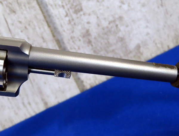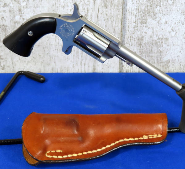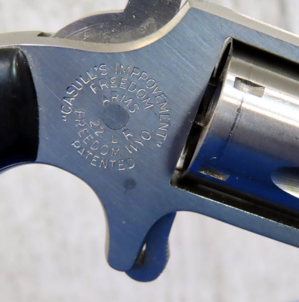 3" Stainless barrel; spur trigger; 5-shot fixed cylinder; black plastic grips; leather Freedom Arms holster; missing front sight; USA; SN#A72584; A-158