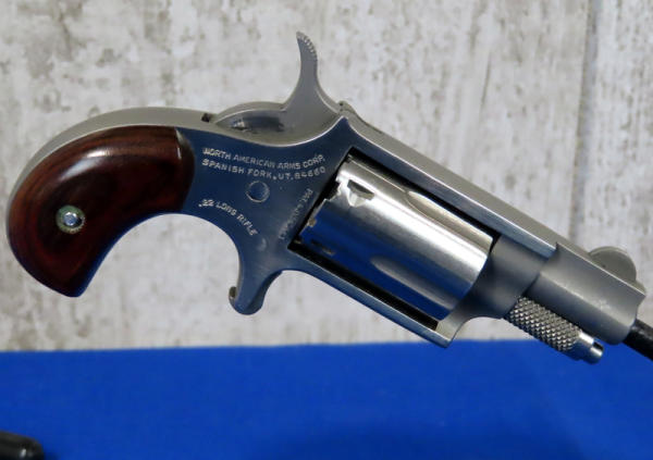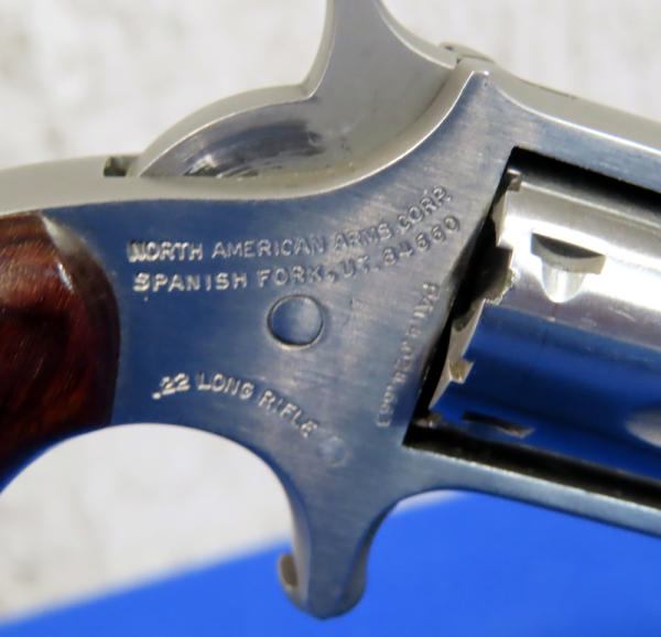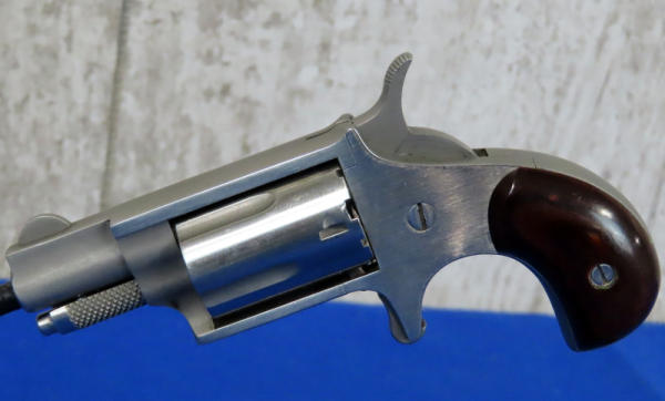 1-1/8" Stainless barrel; spur trigger; wood grips; leather holster; 5-shot fixed cylinder; USA; SN#C64610; A-158