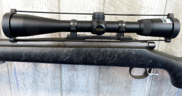 26" Fluted BBL.; smooth action; like new condition; black synthetic stock w/grey webbing; sling; Nikon Buckmasters 4.5-14x40 scope; very nice gun; USA; SN#E6812414; A-115
