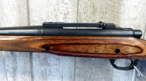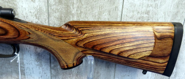 26" BBL.; smooth action; very nice laminate wood grain stock w/great checkering; scope rail; like new condition; USA; SN#E6641669; A-149