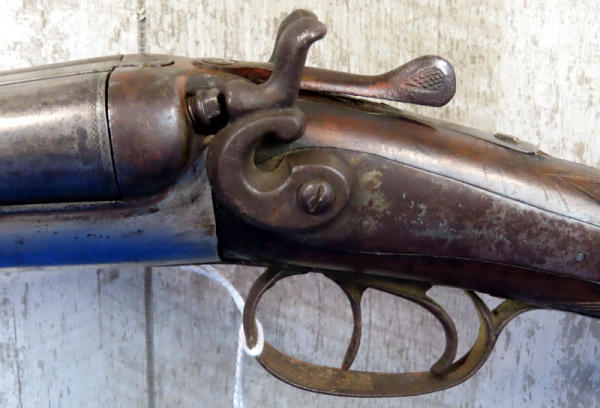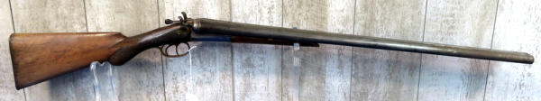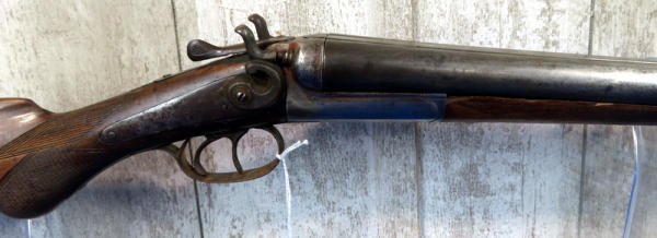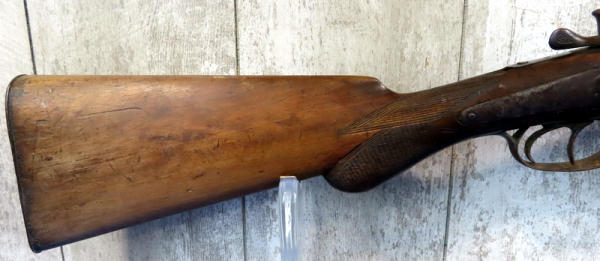 30" Laminated Steel BBLs; easy break action; both mechs work; finish on both wood & steel is thin; has some rusting around the breech; two triggers; Belgium; SN#1900; No Transfer Needed