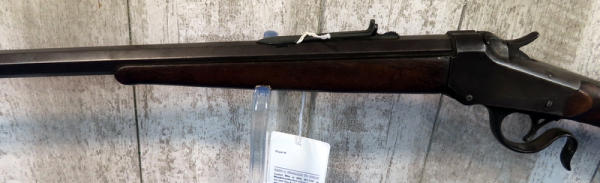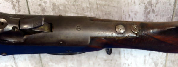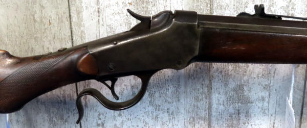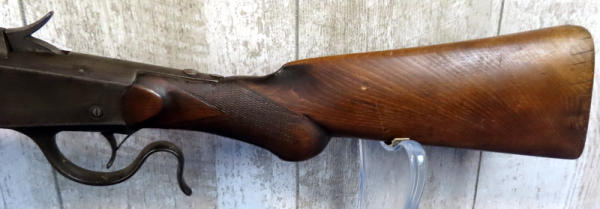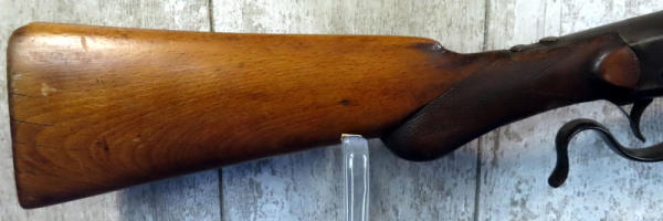 28" Oct. BBL.; easy action; dark patina look to metal; missing butt plate; has some hairline cracks in stock; bottom tang is broken & repaired; USA; No SN#; A-161