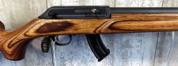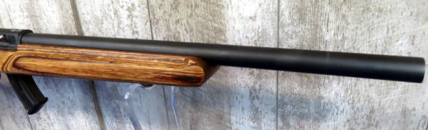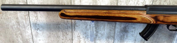 19" Bull BBL.; wood grain laminate target stock; removable magazine; like new condition; has a pad lock on trigger that needs to be cut off, no key; drilled & tapped for scope mounts; USA: SN#T1776; A-129