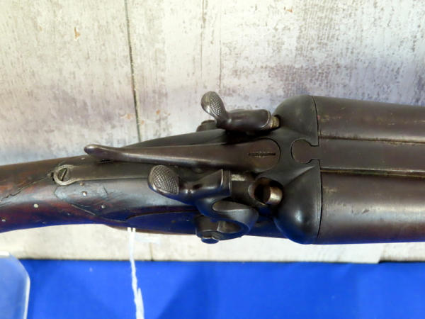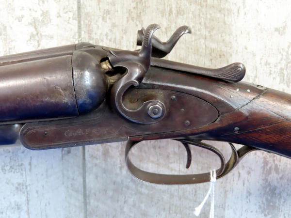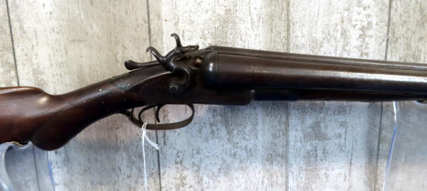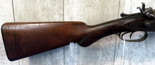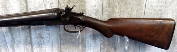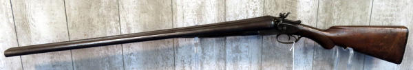 32" BBL.; believe this is a 10 gauge, marked with a "10" on bottom of barrel; easy break action; wood and steel have quite a bit of wear; right mech does not work; two triggers; USA: SN#14417; No Transfer needed