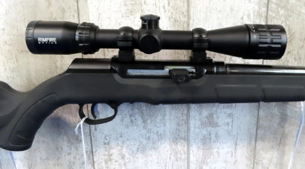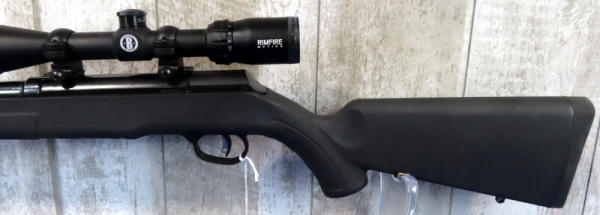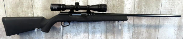 22" BBL.; black synthetic stock; two magazines; Bushnell Rimfire Optics scope; nice gun; USA; SN#K028327; A-148