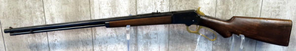 24" Oct. BBL.; smooth action; lever, trigger, hammer & take-down screw have all been painted gold; wood has some use wear; USA: SN#HS295; A-147
