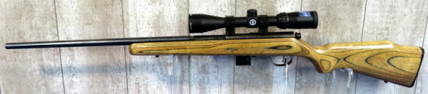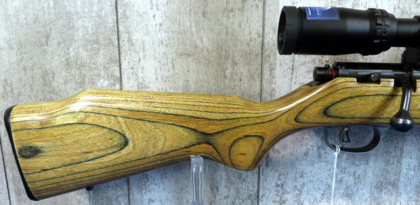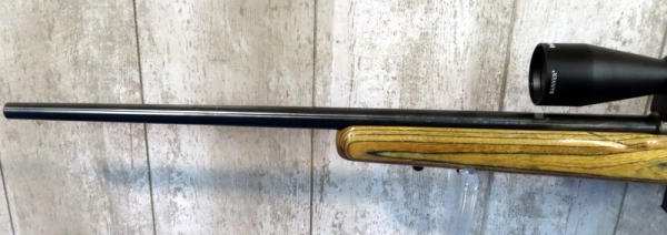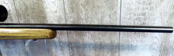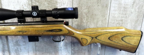 22" BBL.; smooth action; wood grain laminate stock; removable magazine; has some bluing loss on rear of barrel; Bushnell Banner scope; USA; SN#MM27268C; A-168