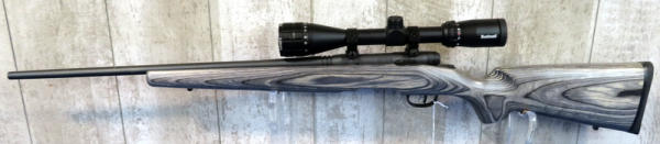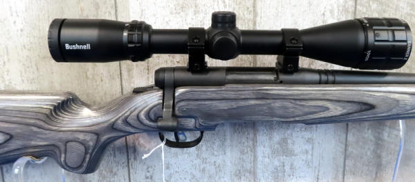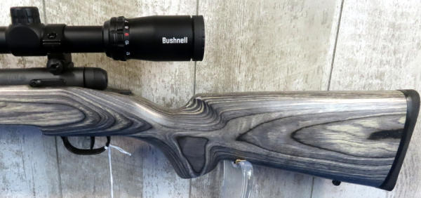 22" BBL.; smooth action; like new condition; removable magazine; Bushnell Banner 2 scope; grey wood grain laminate stock; USA; SN#P722549; A-168