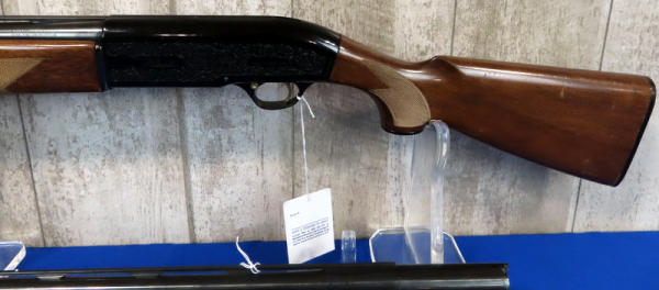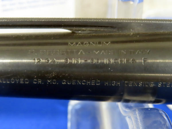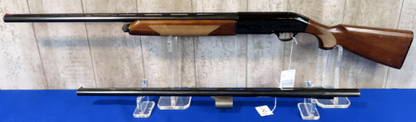 28" VR-BBL. w/Hy-vis front sight, 3", MC on gun; includes a 30" VR-BBL. w/hy-vis front sight, 3" & FC; wood has a few small field marks; factory scroll engraving on receiver nice looking gun; fairly lightweight; Italy; SN#F83359E; A-169