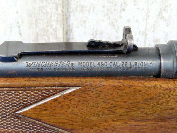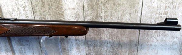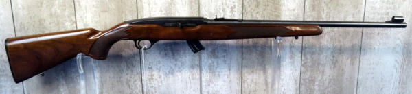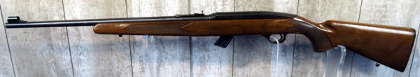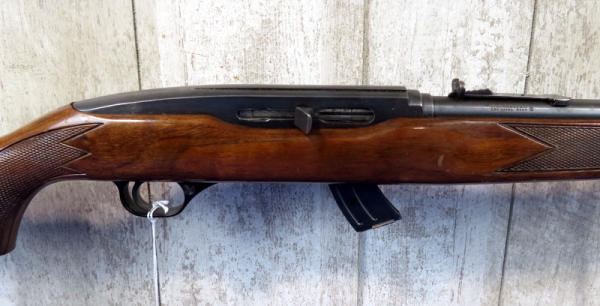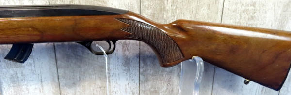 22" BBL.; globe front sight; wood is solid w/nice gloss but has some use wear; removable magazine; USA: SN#J019110; A-134