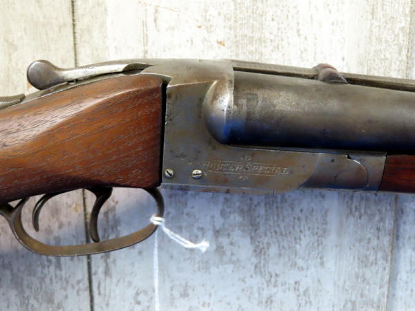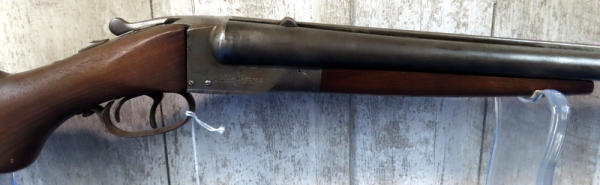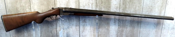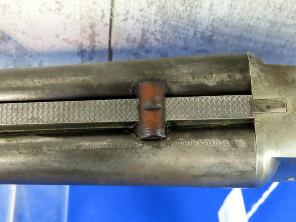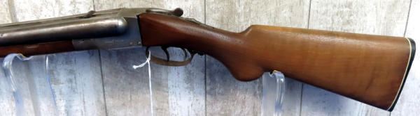 30" BBLs; very stiff open action; has wooden rear sight added; stock looks like it needs to be tightened to receiver; bluing is gone, has some pitting on receiver wood is pretty nice; two triggers; trigger guard is rusty & pitting; Left-FC, Right-MC; USA; SN#185867; A-134