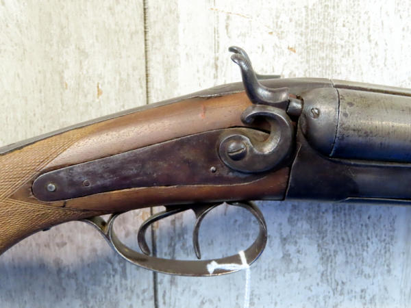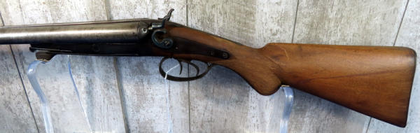 30" BBLs; easy break action; bores need a good cleaning; both mechs work; wood stock has no finish; bluing gone; under forearm release lever; two triggers; both IC; Laminated Steel; Belgium; No SN#; No transfer needed