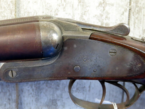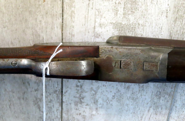 30" BBLs; easy break action; Laminated steel; no bluing; nice scroll engraving on receiver; wood is solid; two triggers; SN#103086; A-134