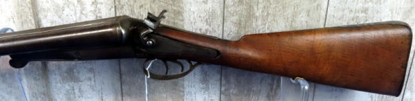 I believe this is a 10ga; 32" Steel BBLs; easy break action; two triggers; both mechs work; stock has damage around the receiver; SN#1019; No Transfer Needed