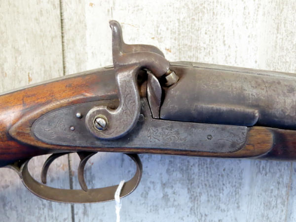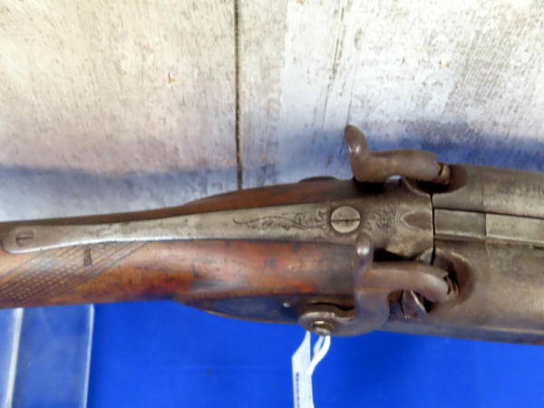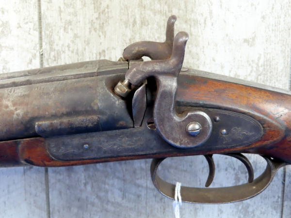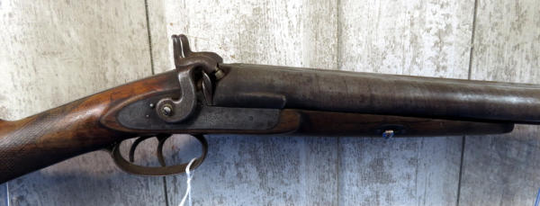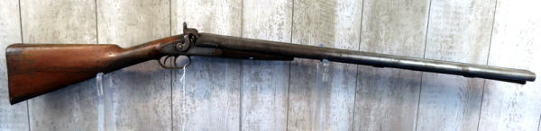not sure if this is considered a 10ga. Shotgun or possibly a 79cal.; very rough condition; wall hanger; 32" BBLs; London fine twist; no SN#; No Transfer needed