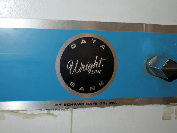 Data Bank Wright Line by Schwab Safe Co.; large double doors w/dial combination lock; outside measures 82"Tx63"Lx38"D; inside is 62"Tx45"Lx22"D; is made to put shelves in or customize it yourself; buyer will receive combination at pickup; extremely heavy, over 3,000 lbs.!; WINNING BIDDER - do not just come and pickup, must give us at least 24 hrs. notice when you'd like to come; NO pickup of this item during the gun auction, we can load it on a trailer with forks.
