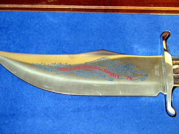 6.5" Blade & 11.75" overall; mint; has leather sheath; COA; wood display box; etched blade; box measures 15.75"x6.5"x4";