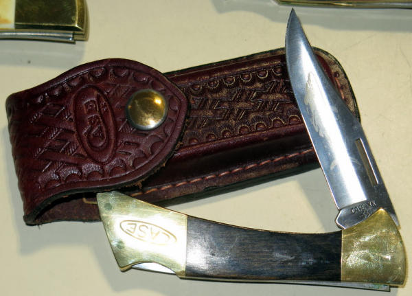 two have stag handles & boxes; all have leather sheaths; all like new; biggest one is 5" long folded; sell 3x the money