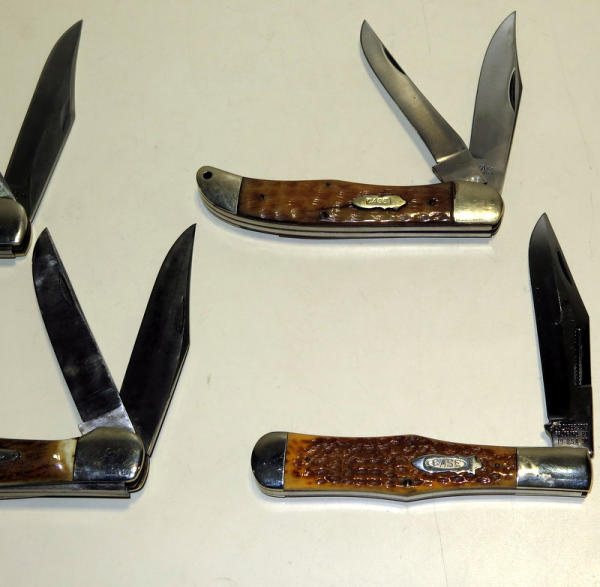 all about 5.25" long folded; Numbers are 61050SAB, 6265SABSS; one is worn and hard to read, looks like 6255SAB; other has no number; all nice used shape; sell 4x the money