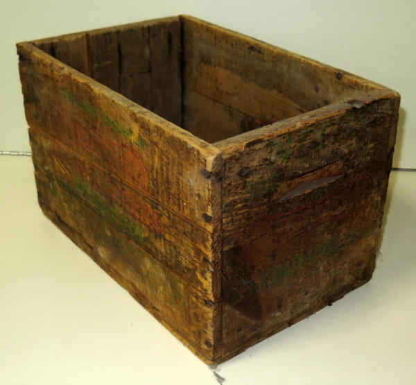 box has some wear; stenciling is hard to read; 15"x9.5"x9"; good bottom