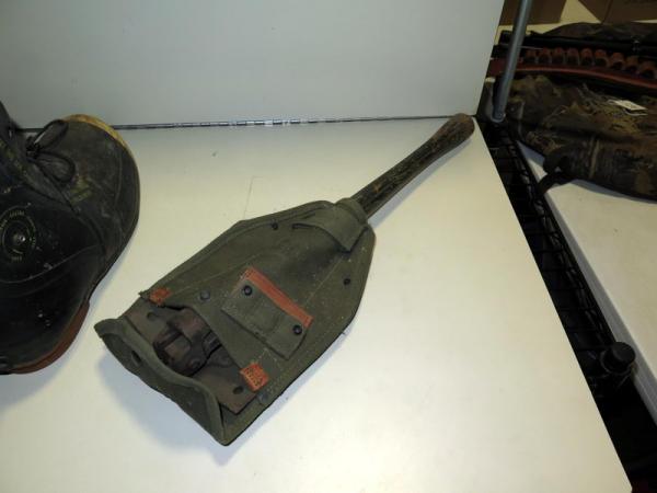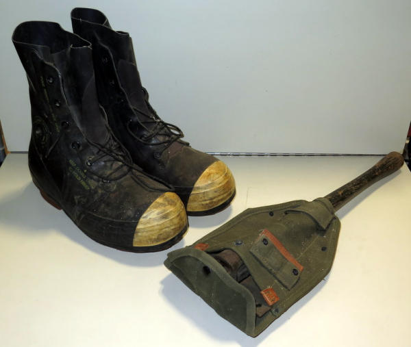 boots are used but good shape, size 10R; comes w/military issue trench shovel; sell for one money