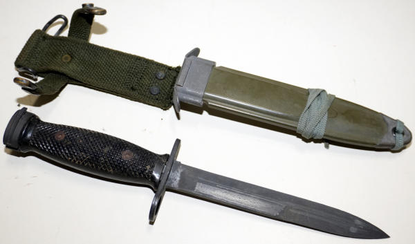 Bakelite black checkered grips; 6.5" blade; sheath marked USM8AI