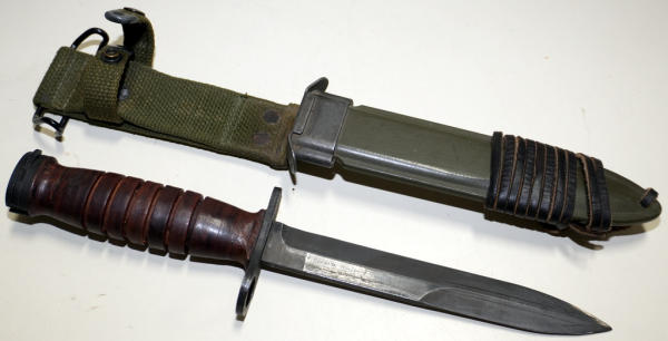 stacked leather handle; 6.75" blade; sheath marked USM8AI