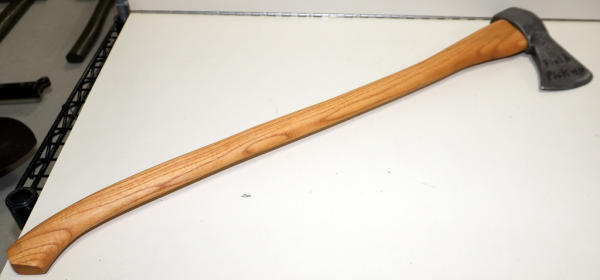 believe the marking is "GND", hard to read w/some pitting on axe head; new handle and cleaned metal; marked as a field pick up; overall 30" long