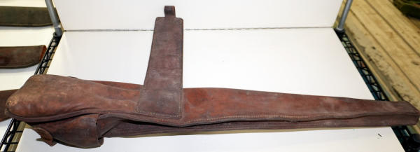leather is stiff and needs cleaning; has maker mark but can't make it out; 34" long