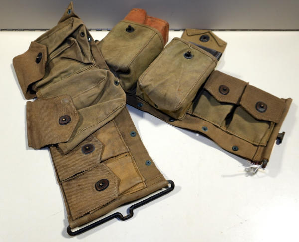 two 30-06 stripper clip pouches (with 4 stripper clips with brass). Includes 2 blued BAR magazines and 1 EK 1943 leather spare parts box in the pouches.